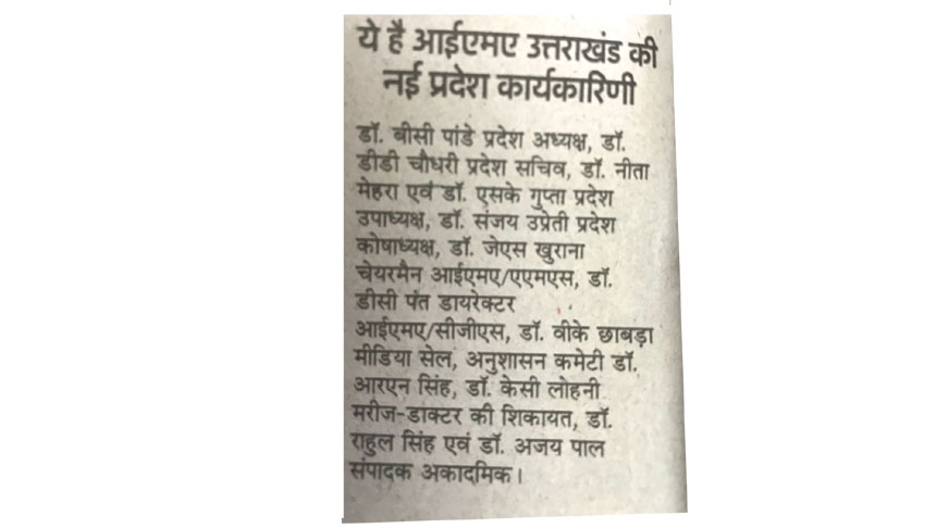 • List of Office Bearers of IMA MSN Uttaranchal Chapter